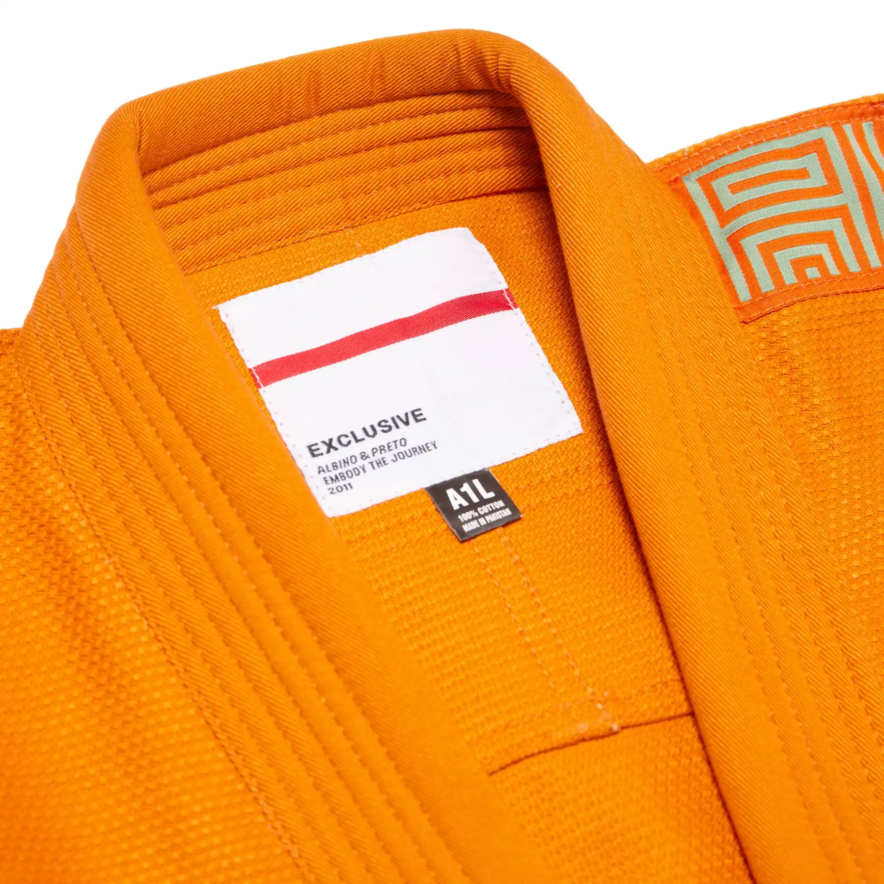 The Jaffa QS stands out in a bold Jaffa orange tone with clean teal accents and a hint of mint detail. Branded embroidery and woven patches highlight the Albino and Preto identity without feeling loud. The color combo gives a modern look that reads clearly on the mats and in photos.