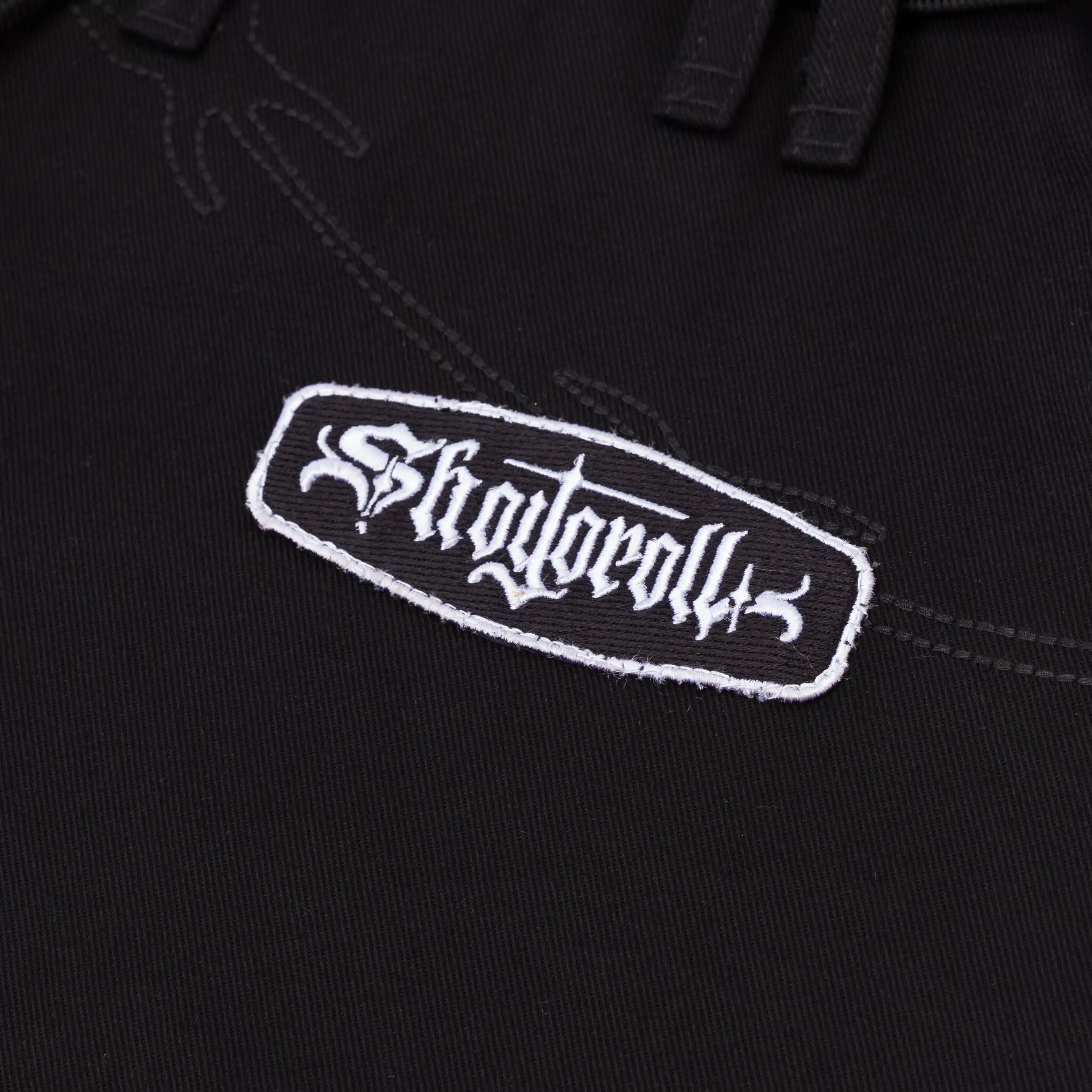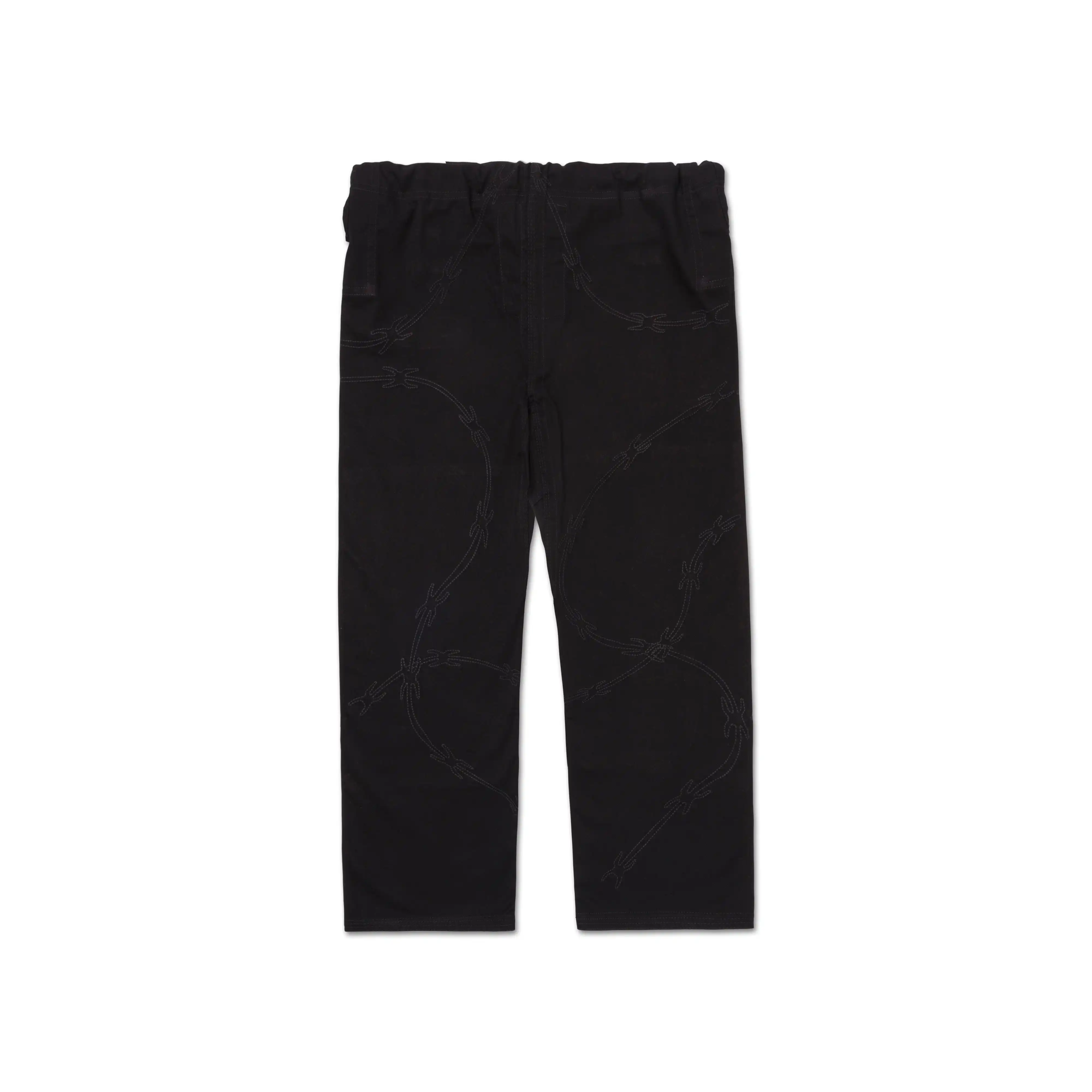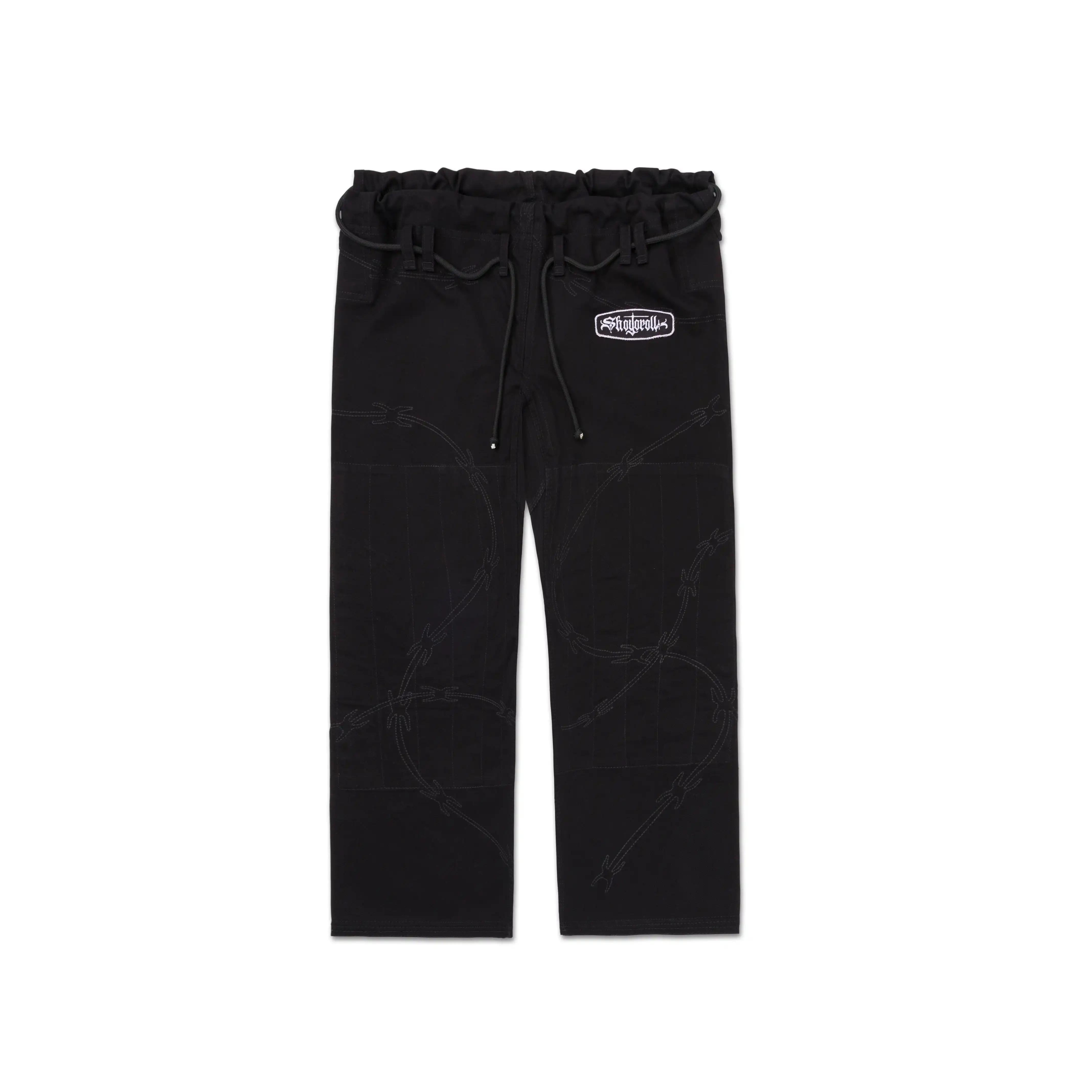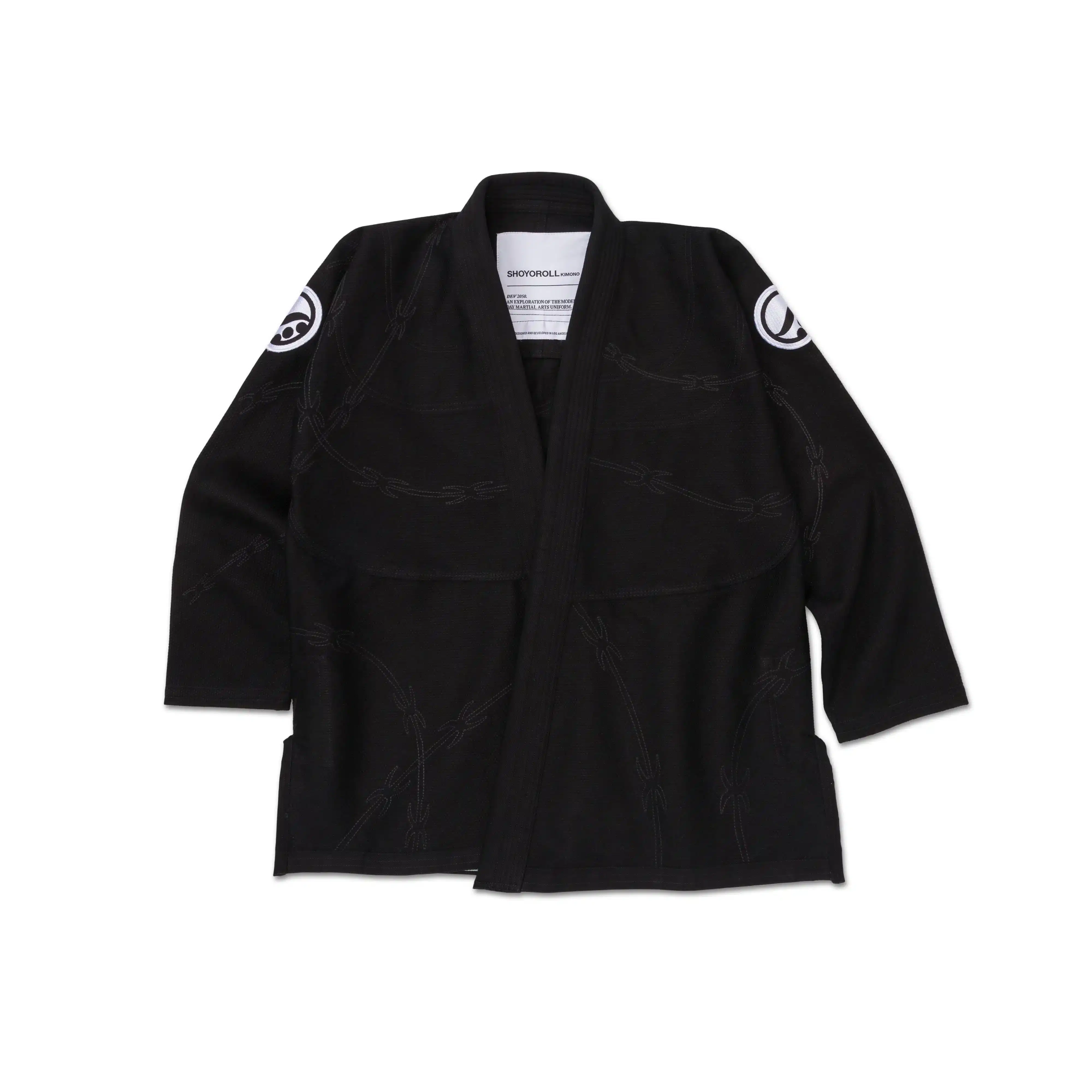 The Barb Wire Kimono is the centerpiece of the Barb Wire Collection, offering a unique blend of strength and restraint. This 450g pearl weave jacket, paired with 10oz twill pants, features tonal barbed wire embroidery that runs throughout the garment, complemented by stylized patch motifs. The detailed embroidery on both the jacket and pants enhances the overall aesthetic, creating a powerful visual effect that is both raw and refined.