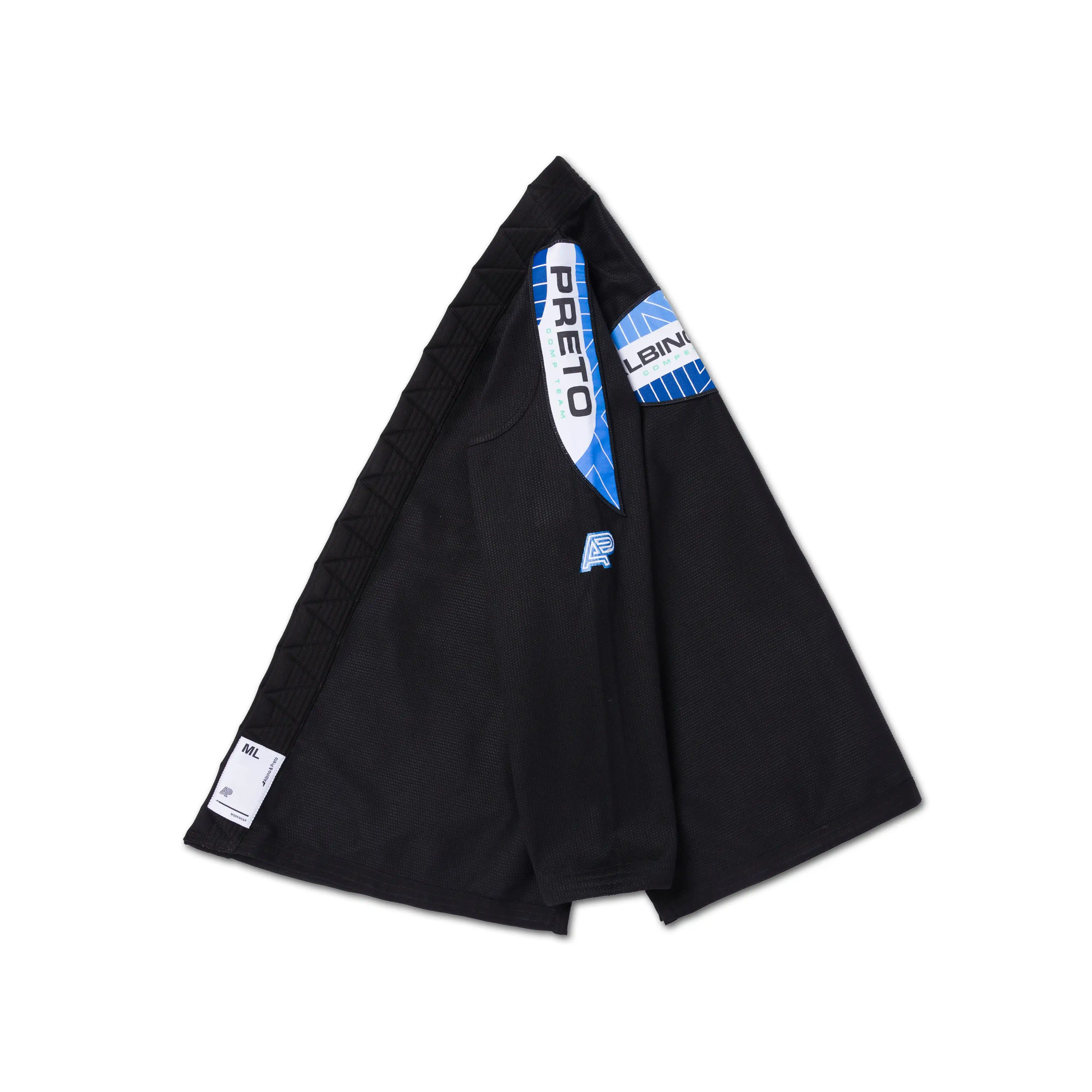 The A&P RNG Comp BJJ Gi Black — IBJJF Approved — stands out with precision embroidery that delivers clean, competition-ready visibility. On a classic black base, the royal, navy, and green palette creates sharp contrast that reads clearly under bright lights and in action photos. This imported BJJ Gi Kimono presents a refined, team-forward look without excess flash, keeping attention on timing, grips, and pressure. Select your size to match your academy colors and step onto the mat with confident, professional presentation.