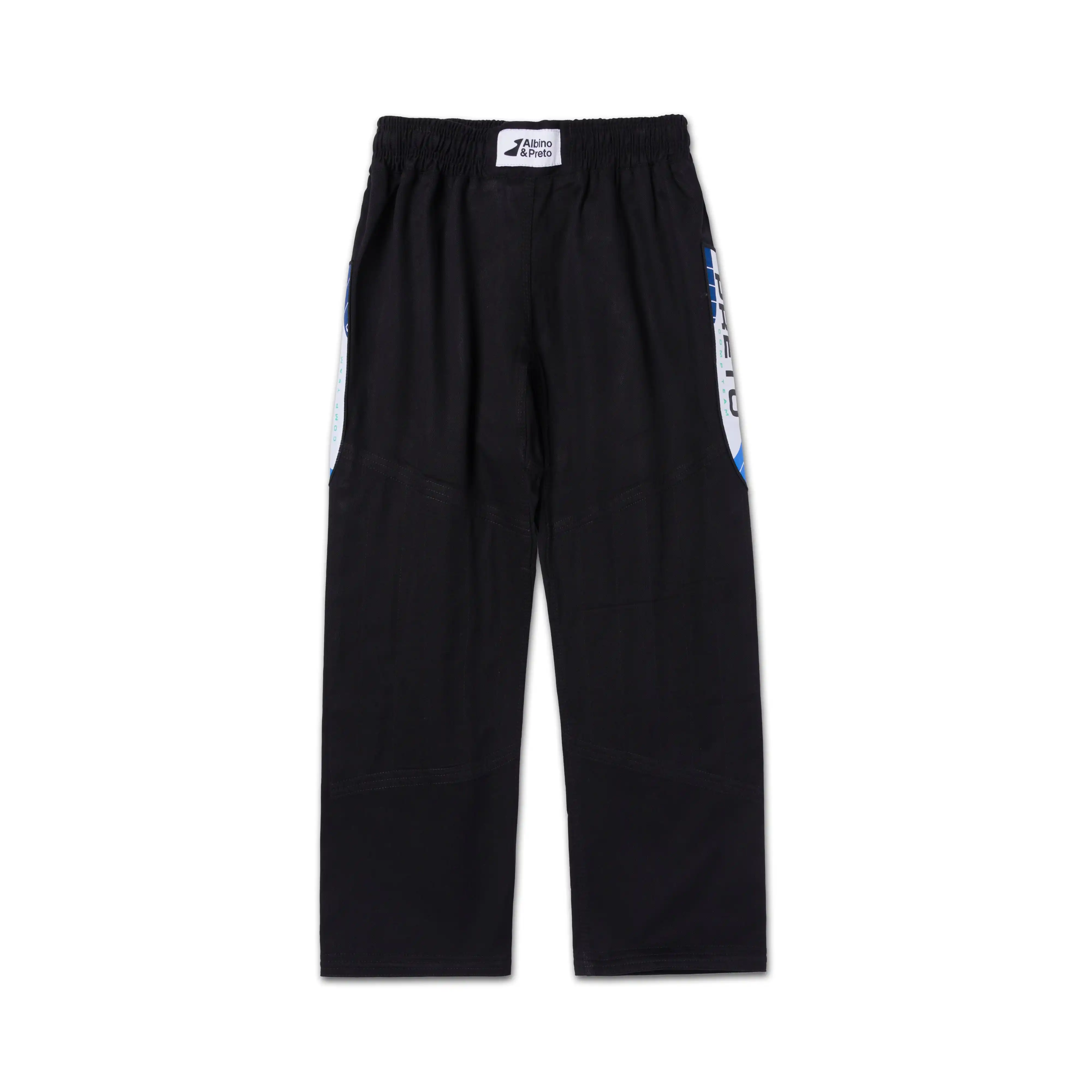 The pants on the A&P RNG Comp BJJ Gi Black use a 10oz cotton Full Elastic Pant (FEP) build engineered for hard training and competition. Breathable yet sturdy, they move cleanly during scrambles and stay comfortable through long rounds. The full elastic waistband pairs with a flat drawcord and sleek waxed tips for a secure, low-bulk fit that won’t loosen mid-roll. Color accents in royal, navy, and green match the jacket for a unified, competition-ready kit that is imported and IBJJF approved as a set.